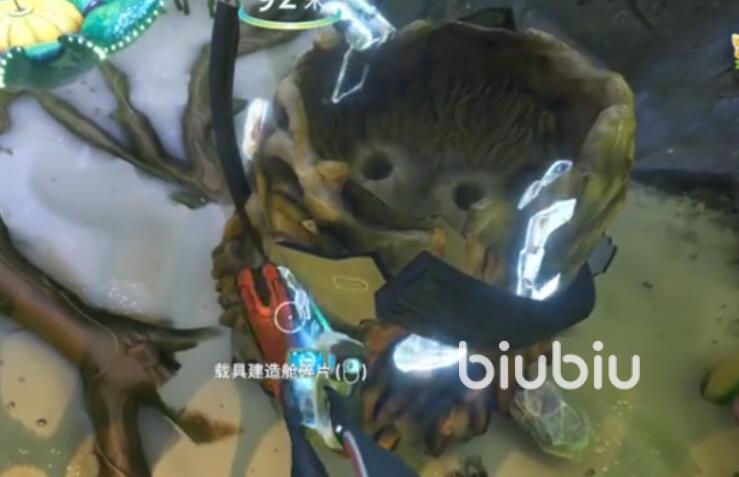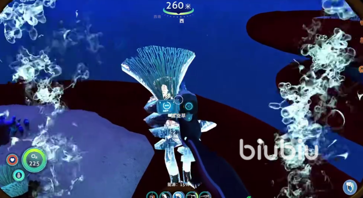第一处高产点位于成年期花园水母体内。该巨型生物呈伞状结构,与螺旋草形成稳定共生关系。仅当其发育完成并静止锚定于海底后,下方腔体开口方可进入;游动状态的幼年个体无法通行。玩家需从正下方入口潜入内部腔室,即可发现大量密集生长的螺旋草。使用小刀连续挥砍,单次进入可稳定收获数十单位切割物,采集效率极高。