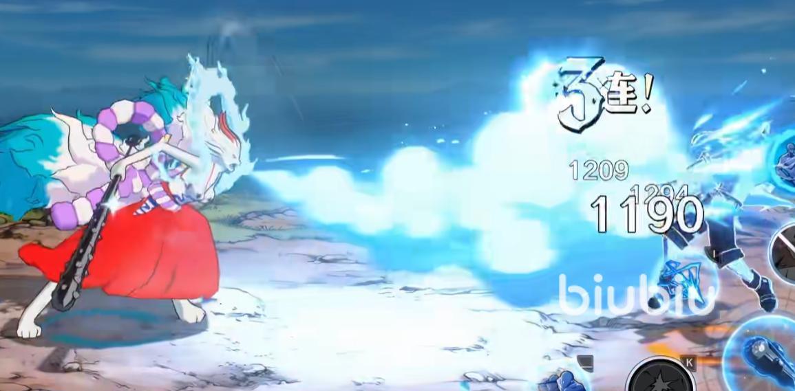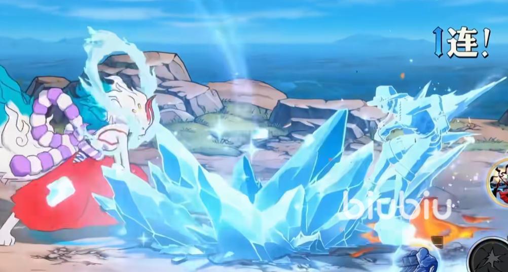 人兽形态下,大和体表自动生成持续性冰壳。当敌人首次对其造成非抓取类伤害时,立即触发“金蝉脱壳”效果——大和向后大幅位移并脱离战斗接触,对缺乏稳定抓取手段的对手构成实质性压制壁垒。该形态普攻亦为5段:1A与2A为平推攻击,附带武装色雷电;3A为跳踹击飞,可叠加寒霜层数,连续两次命中触发冰冻;4A为多段吐息寒气,具备多段判定,仅首段可被替身规避,后续命中则锁定控制;5A为突进追打,含武装色雷电,且3A结束后反向拉摇杆可进入“野兽奔袭”状态,提升移动速度并无缝衔接4A。