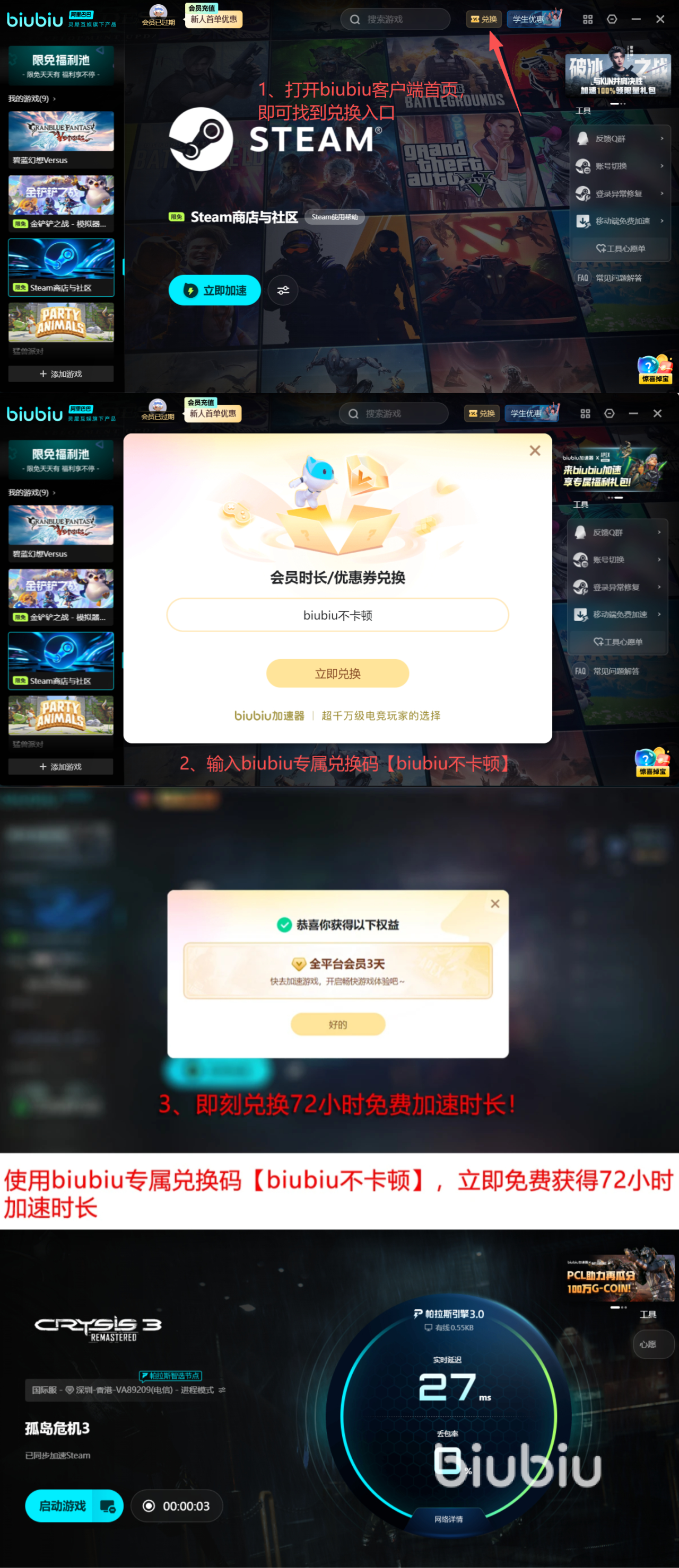 现在正是体验biubiu加速器威力的最佳时机,平台开放新人激励计划,新用户注册即赠24小时无门槛专属加速服务!更可输入专属口令【biubiu不卡顿】,额外领取72小时优质加速时长,总计畅享96小时全平台免费加速权益。告别卡顿闪退,即刻开启你的纽约纳米穹顶终极之战!
