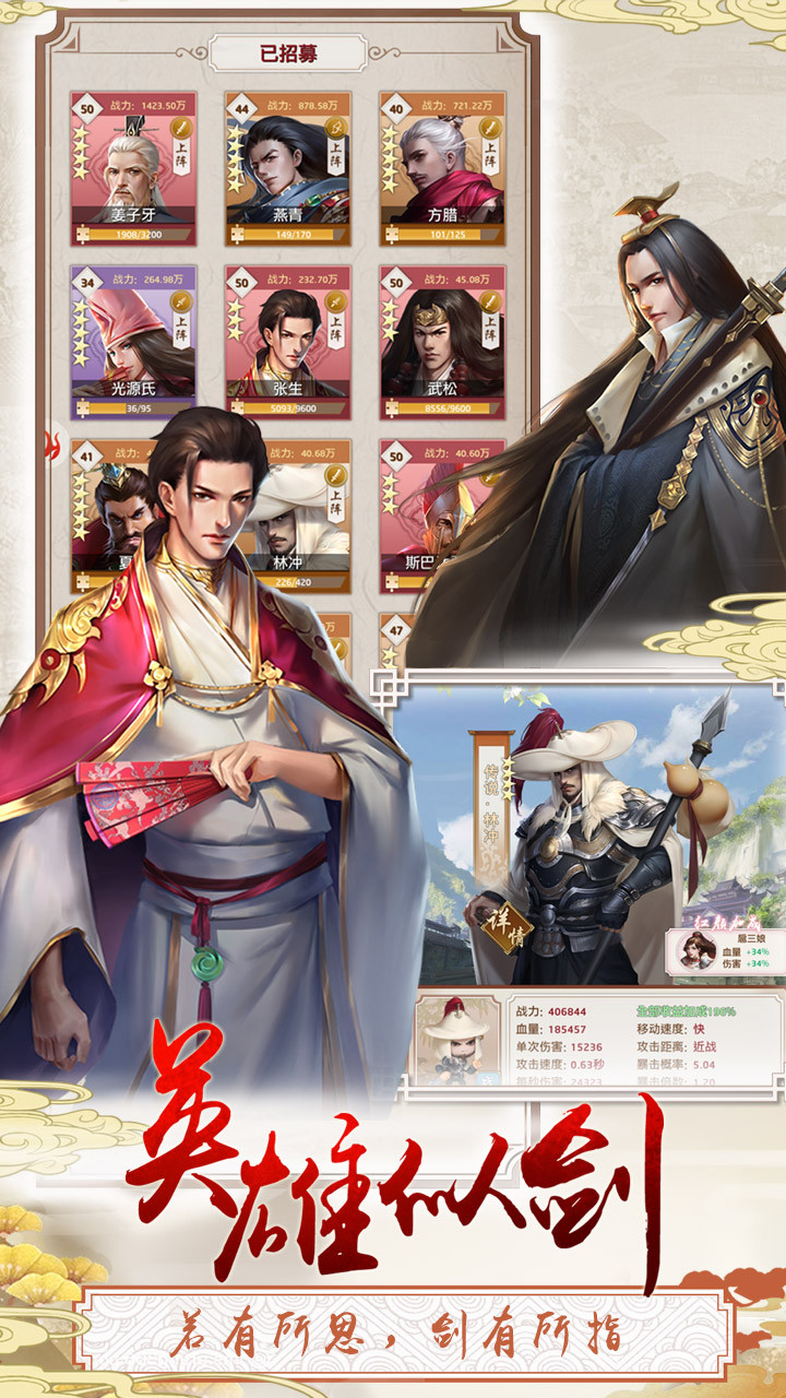 这些英雄们需要上阵杀敌,让这些存在在远古传说的英雄们奔跑起来,为了守护自己的城池进行战斗,可以让各位玩家真正的观赏到羽扇纶巾和雄姿英发的场面。