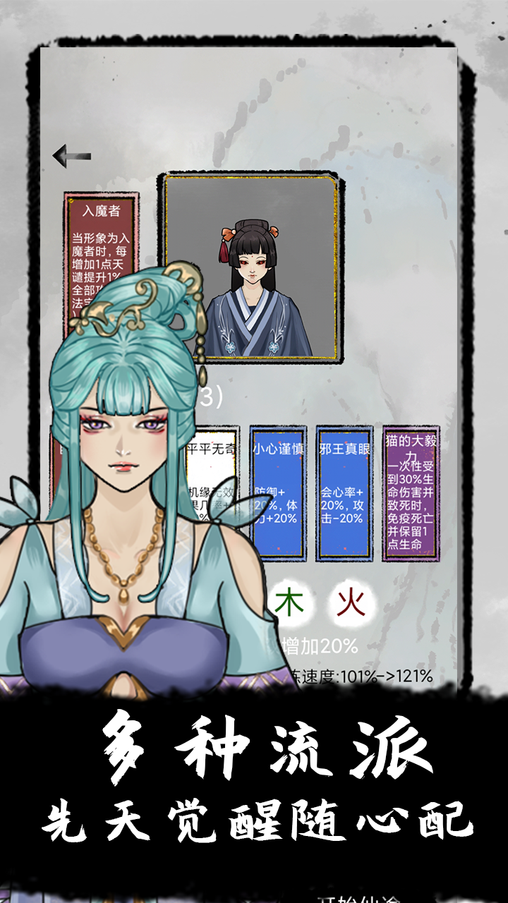 在这款修仙游戏当中,每一个玩家在进入游戏之后,就会被赋予各种各样的随机天赋,这些天赋有好有坏,会在一定程度上提升玩家的具体参数,让玩家在游戏当中获得别样的特点。