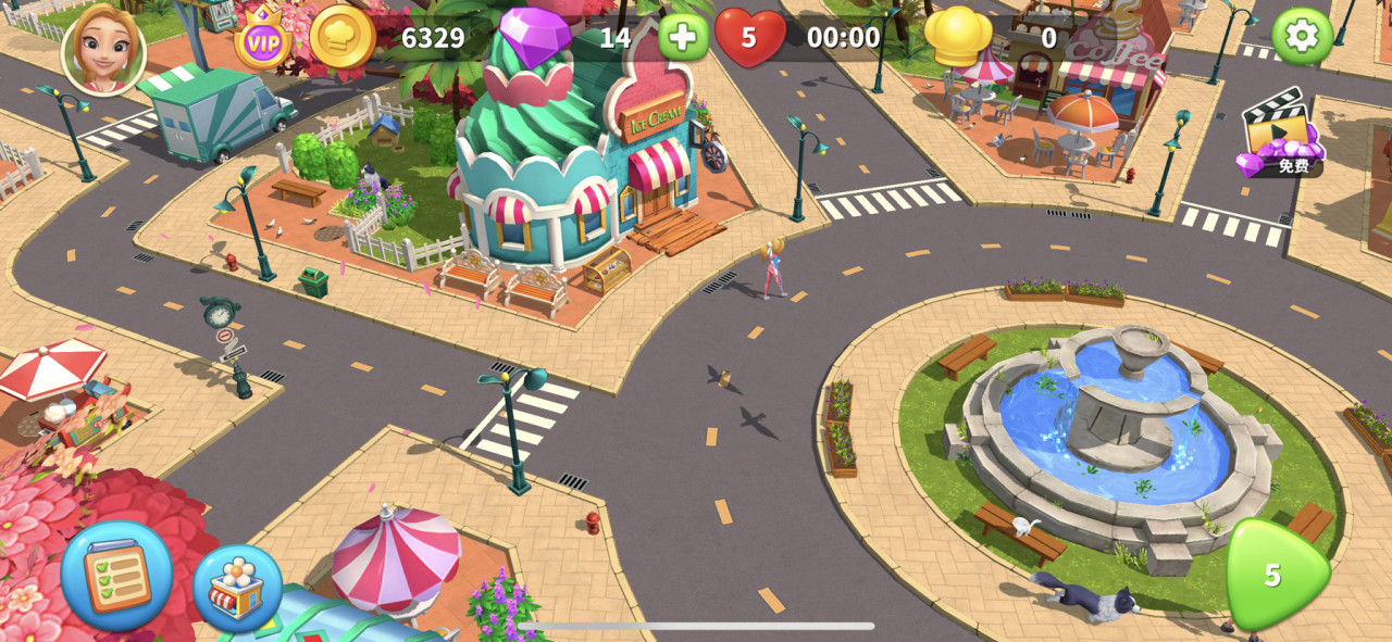 游戏进行在一个你的开心小镇里,小镇上有蛋糕店、烧烤店、冰淇淋店、海鲜店等多个主题餐厅,菜品丰富多样,不断解锁新餐厅提升厨艺技能;还可以通关不同目标的关卡,以此获得奖励来翻新和建设你的餐厅,和镇长他们一起建设小镇家园恢复往日光彩。