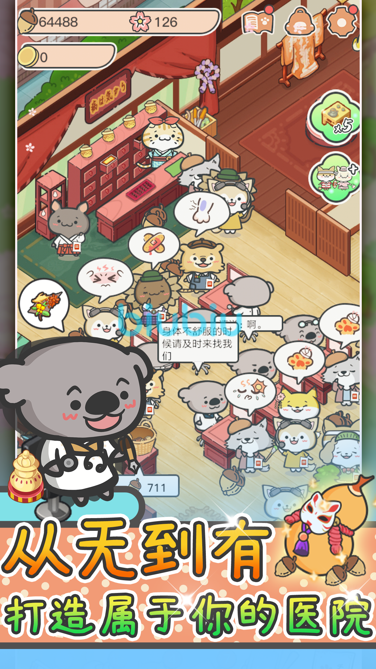 在这款游戏当中,玩家将可以经营一个医馆,如果玩家想要提升自己医馆的知名度和实力,就需要提升自己医馆的医师水平,玩家可以雇佣各类动物作为自己的员工,提升自己医馆的实力。