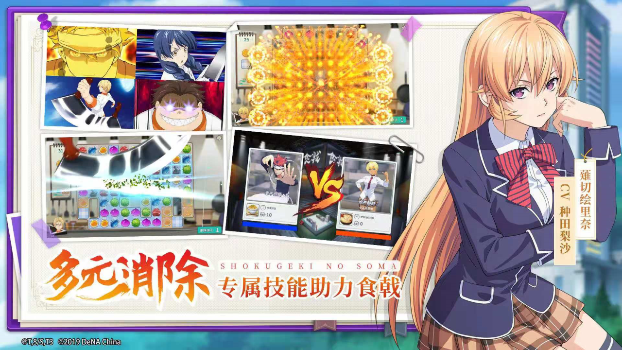 梦幻料理是改编自正版授权的日本高人气动漫《食戟之灵》,这款游戏以美食为主题,利用三消战斗获得游戏快感,模拟经营进一步还原经典剧情。游戏在保留原作的核心要素的基础上,努力解锁更多新奇有趣的玩法。