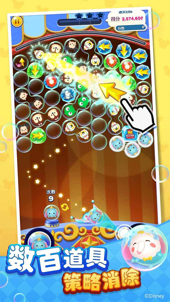 游戏中主要使用迪士梦幻元素和各种角色来进行泡泡消除新玩法,游戏简单易上手,同时乐趣无穷,畅快消除。初次之外,玩家还要构造经营好自己的松松乐园小镇,创造属于自己的迪士尼乐园,在自己的不断努力下,将乐园繁荣发展。