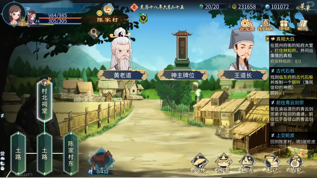 灵历十八年黄老道在哪小编就介绍到这,可以在陈家村的村北祠堂中看到黄老道,与他进行沟通后可以获得多个消息,还可以在村北祠堂中碰到王道长和神主牌位,开启各种不同的其他活动,希望小伙伴们喜欢。