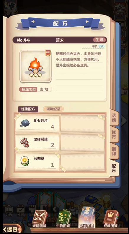 2021年09月29日 11:14 来源:道隐诺弗兰物语中可以通过炼金来制作出许多有意思的产物,营火就是其中一种,是外出必带道具,小编今天给大家分享一下诺弗兰物语营火最新完美配方。