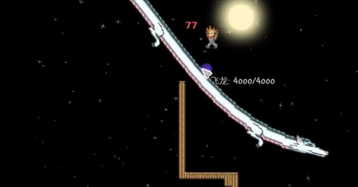 而另外一种必要的素材就是飞翔之魂了。在困难模式后的太空会生成飞龙这种敌人,击杀之后可以掉落5-40个飞翔之魂。想要达到太空不一定需要翅膀,我们在搭物块、喝重力药水、建立向上的铁路等方式都可以达到太空。