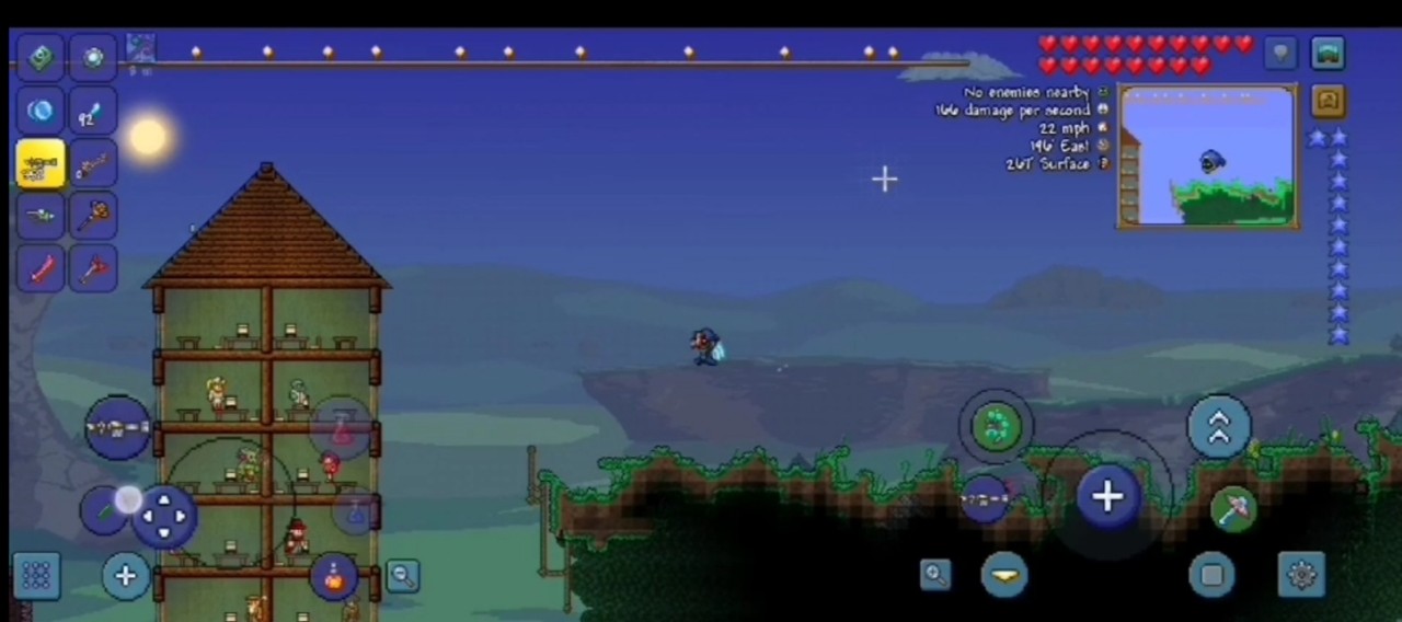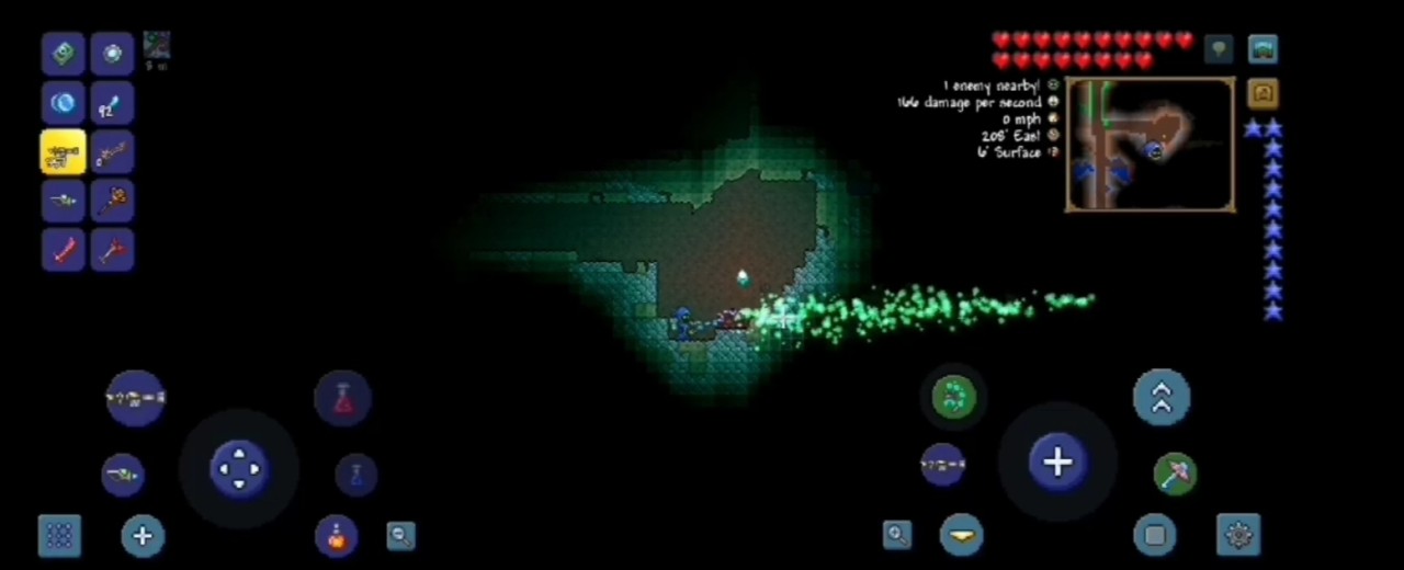 手机版的泰拉瑞亚操作界面就显示在屏幕之上,玩家可以通过屏幕偏下方的操作界面。去移动自己的游戏角色操作他去挖矿产,打boss前进拾取,界面比较简单。