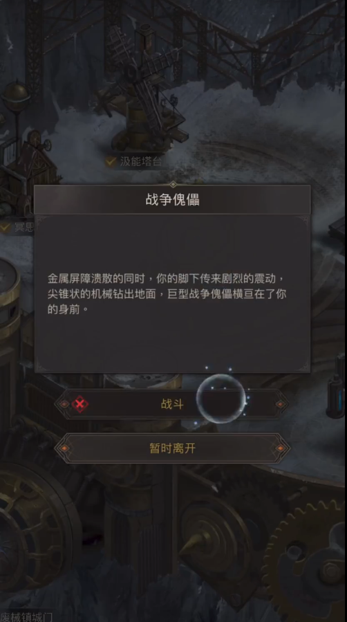 接着在11这里购买风雪种子调节气候天气获得战斗属性加成,在风雪天前往能源工厂拿走滤网回到11这里,购买结构透过镜,然后我们就可以突袭傀儡熔铸所、炼成所、运转场了,我们需要一次攻打:蓝色原型、红色星形和白色方形,打完之后械能运转所就会关闭BOSS会被大幅度削弱,最后哦我们在金属屏障处和战争傀儡交战!