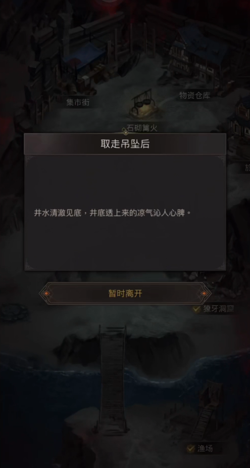 第三部分,也就是我们的伊萨顿任务,我们前往枯岩岛集市买东西,然后投放在水井中,接着我们看着剧情就可以找到吊坠,把吊坠交给伊萨顿就可以完成见闻任务了。