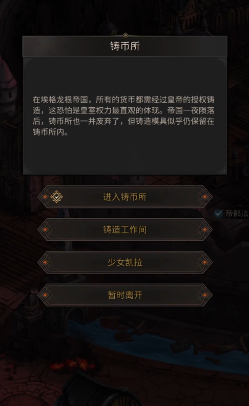 首先我们在阿克尤姆和魔像作战,当我们击杀魔像之后凯拉就会出现,在这里我们不需要战斗,只需要和凯拉对话然后前往铸币所,接受她的委托帮助按下熔炉室的开关。