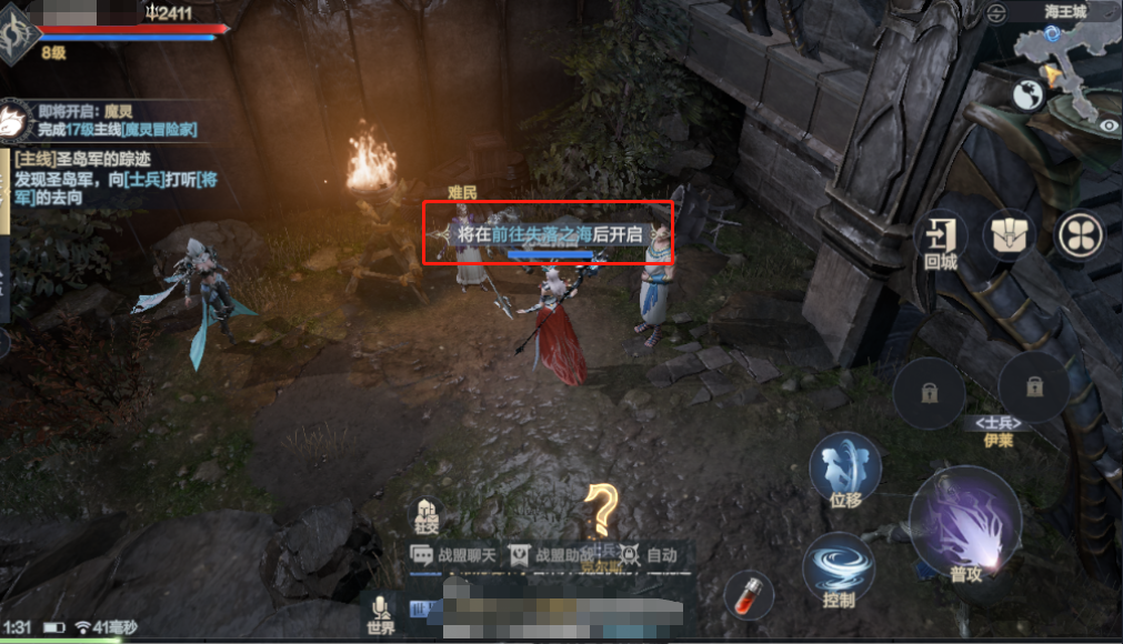 2、需要注意的是自动战斗模式初期是没有开启的,需要玩家完成主线任务并前往“失落之海”后才能开启。