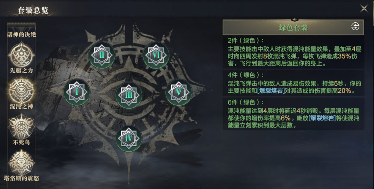 1、这一套“混沌之神”的文套装需要玩家到达90级时才能开启,这一套符文可以针对法师的所有主要技能“进行强化。这一套符文可选择性非常的高,必将任意主要技能击中敌人都能得到“混沌效果”。