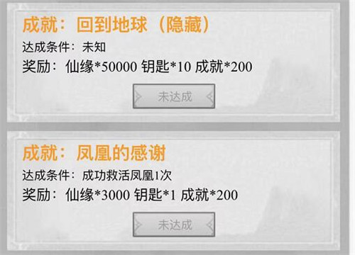 玩家在混搭修仙的界面点击成就就可以进入成就界面,在成就界面第二个就是回到地球,这是一个隐藏成就,达成条件上面没有提出来,不过完成成就就看夜里获得50000仙缘、10把钥匙和200点成就值,奖励很丰厚,很多玩家都想要,在不断的修仙过程中很多玩家也终于达成了回到地球的成就。