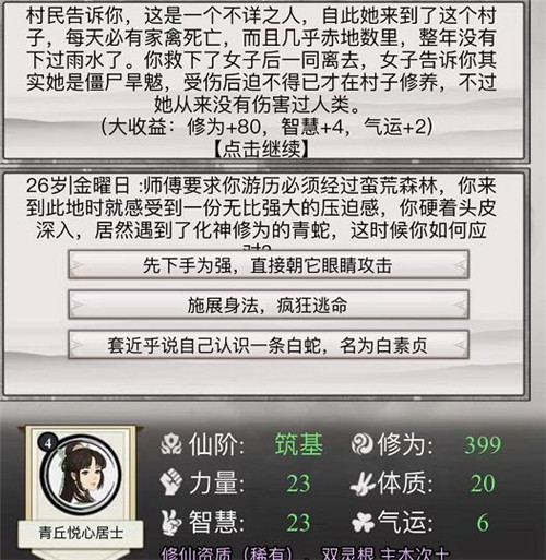 在游戏中气运的提升是比较困难的, 玩家需要在很多修仙中才可以获得,每次获得只有几点,挑战失败还会扣除气运,所以玩家要谨慎的对待每一个选项。
