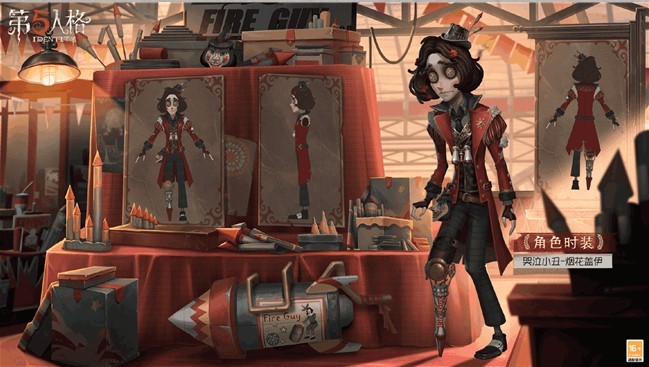 哭泣小丑-烟花盖伊着装也颇为华丽考究,但略微佝偻的身躯却给人以浓浓的忧虑感;烟花是他身上最为显眼的元素,连发梢都在燃烧,如同点燃的引线,随时会放飞烟花,上演炫目的视觉盛宴。