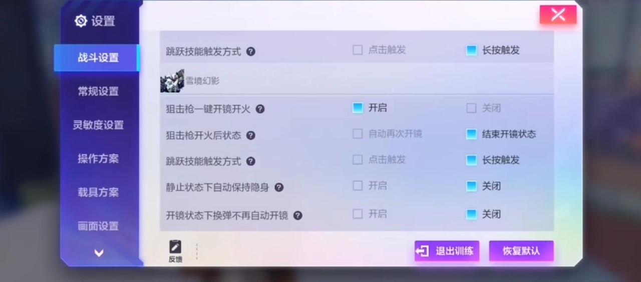 小伙伴们打算玩雪境幻影这款新机甲的话,首先是需要将它的一键开镜开火给打开,而该选项就位于战斗设置里面,其他的都可以关闭。