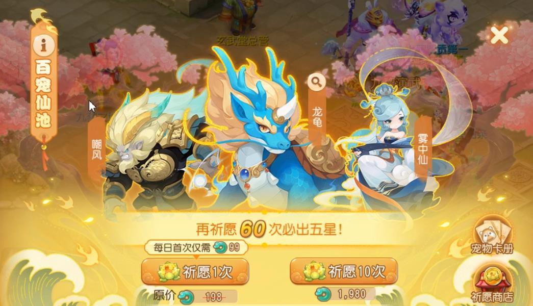 在活动期间,小伙伴们可以前往百宠仙池抽召唤灵,抽满二十次将必出四星,抽满六十次则必出五星,其中三星也能出稀有泡泡。