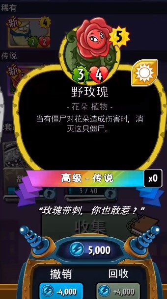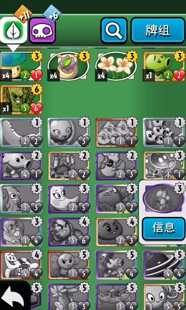 玩家们通过抽奖来获得卡组,这些卡组是由各种僵尸和各种植物组成的,每个卡片都有不同的效果和能力,并且上面还显示了这些卡片的血量和蓝量。