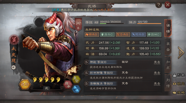 阵容构成:陆逊(勾魄/兵无+杯鬼/当锋/太平)+太史慈(折冲/弯弓+暴戾/速趁)+程普(锦帆+草船/军民)