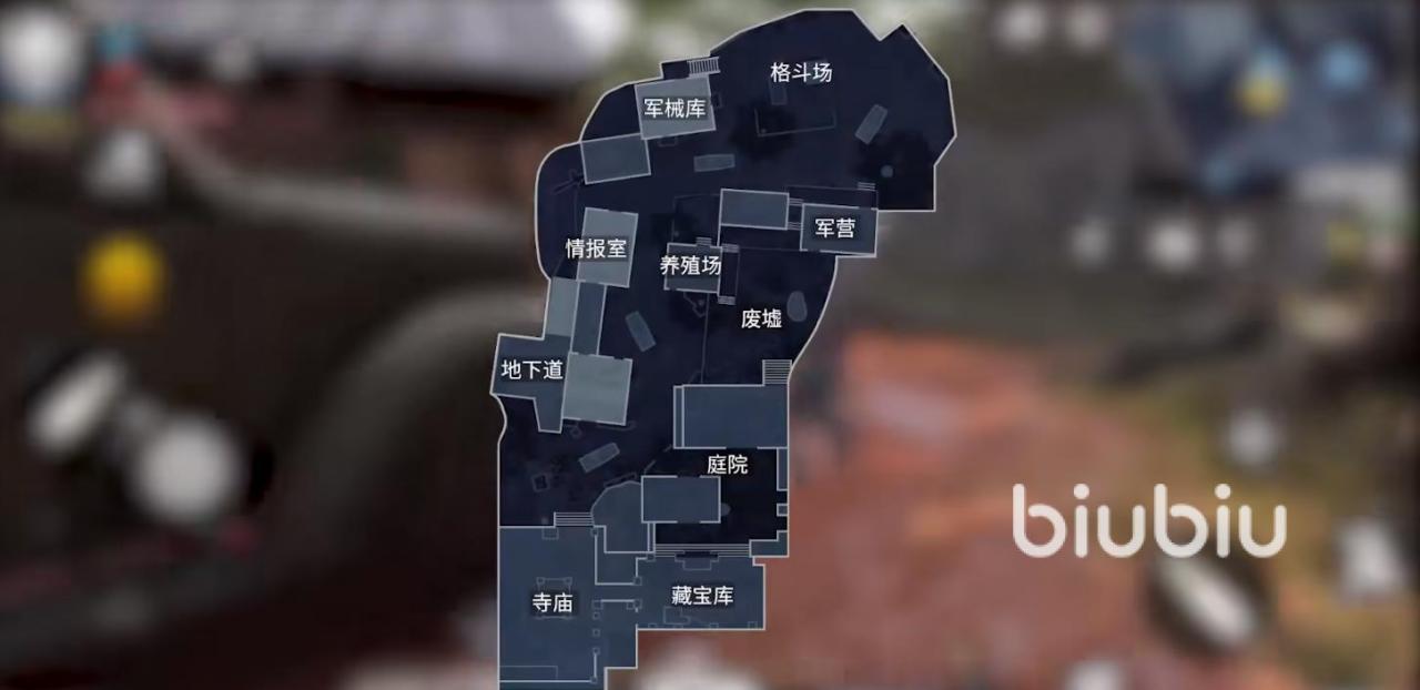 再来看右侧的路线,它包括了格斗场、军营、废墟、庭院以及藏宝库,其地形就有些复杂了,主要是中近距离的战斗,小伙伴们可以在养殖场处进行快速转线,而庭院处有一个矮墙连着主道路,站在这个矮墙上也能对主干道上的敌人进行压制。