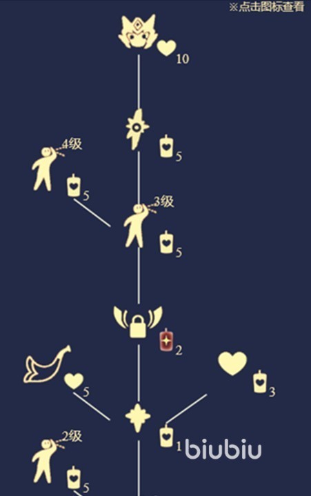 首先是收听动作,一共有四级,每次升级都需要消耗五个黄色蜡烛,第二个是光之石,需要一个黄色蜡烛解锁,第三个是牛号角饰品,获得需要消耗五个黄色小星星,第四个是魔法石,获得需要消耗五个黄色小蜡烛,第五个是超酷高达头盔,获得需要消耗十个黄色小星星。