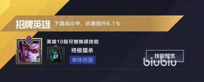 【勇武强化】:全场比赛中,每当选手击败1个敌人后。自身最终增伤提升16%(8级),最多叠加4次。