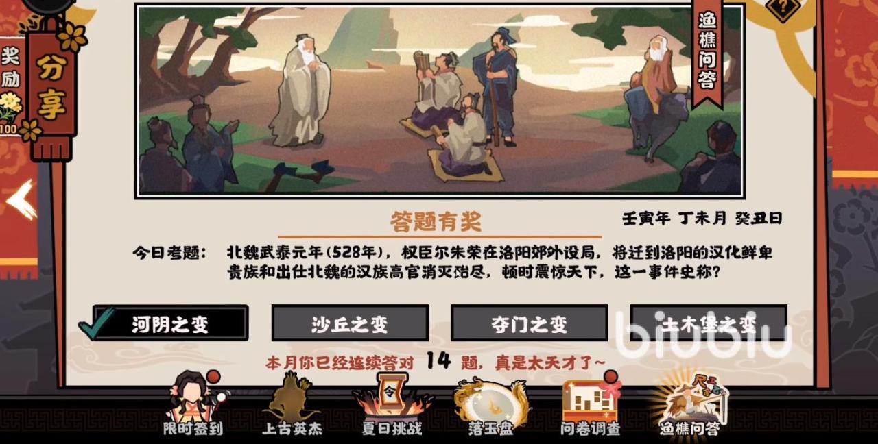 2022年06月30日 16:15 来源:湖多多无悔华夏里面,小伙伴们除了在各个剧本中一统天下,经常参与的另一个玩法就是渔樵问答了,而无悔华夏渔樵问答6.29答案是什么呢?各位回答出今日份的题目了吗?没有的话,就一起来看正确的问答答案吧。