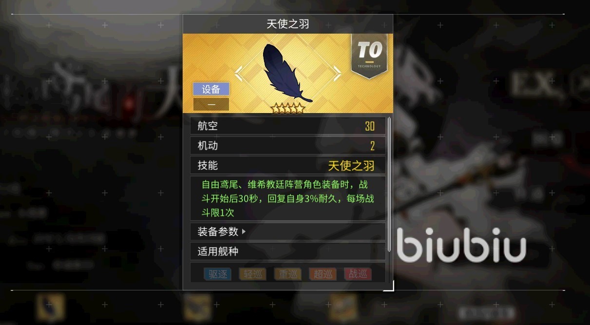 以上便是碧蓝航线天使之羽怎么样以及新装备天使之羽强度分析的全部内容,如果想获得更多关于该游戏其他方面的内容,那么不妨前往biubiu加速器对应页面查看吧!