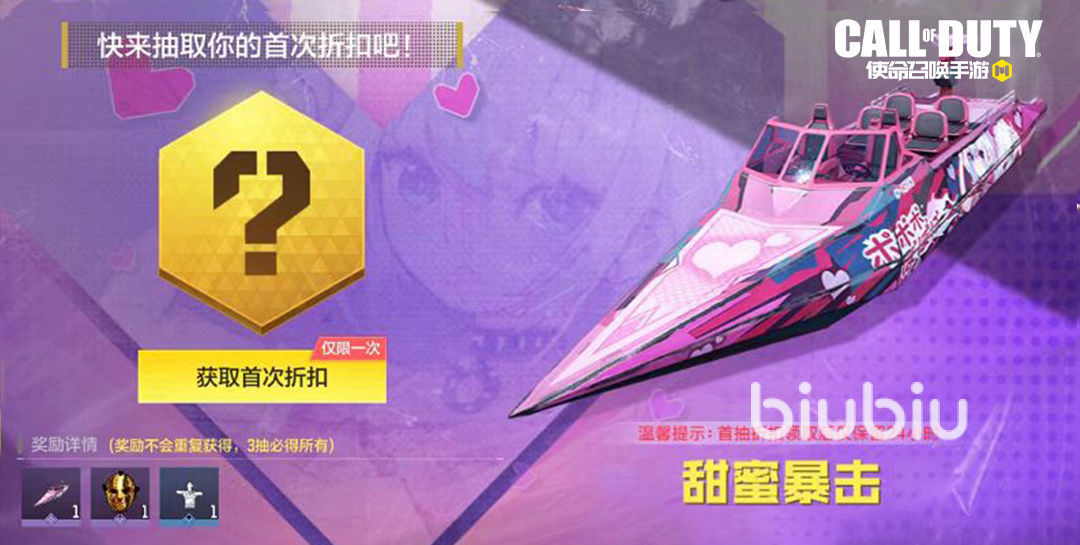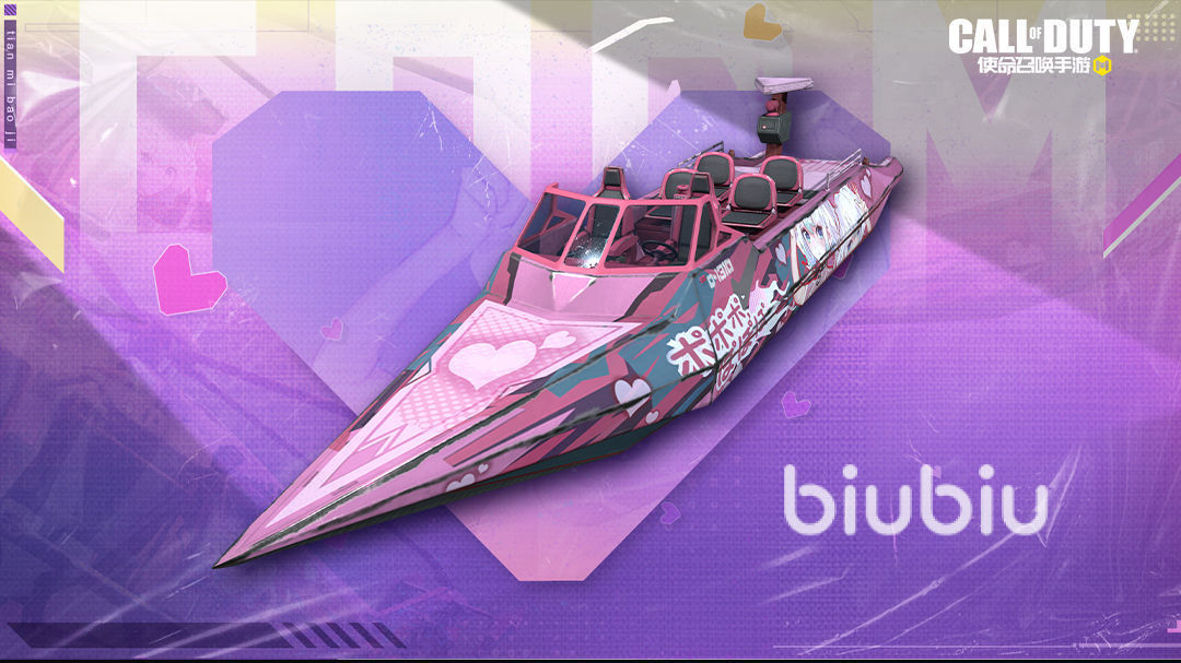 再就是那个甜蜜暴击系列的冲锋艇,依旧是以粉色为主色调,船身的左侧还有可爱的二次元美少女形象,船身正前方还有粉色的爱心,仿佛是在向你示爱呢!整个冲锋艇超级吸人眼球,真的很难将眼光从它身上移去。