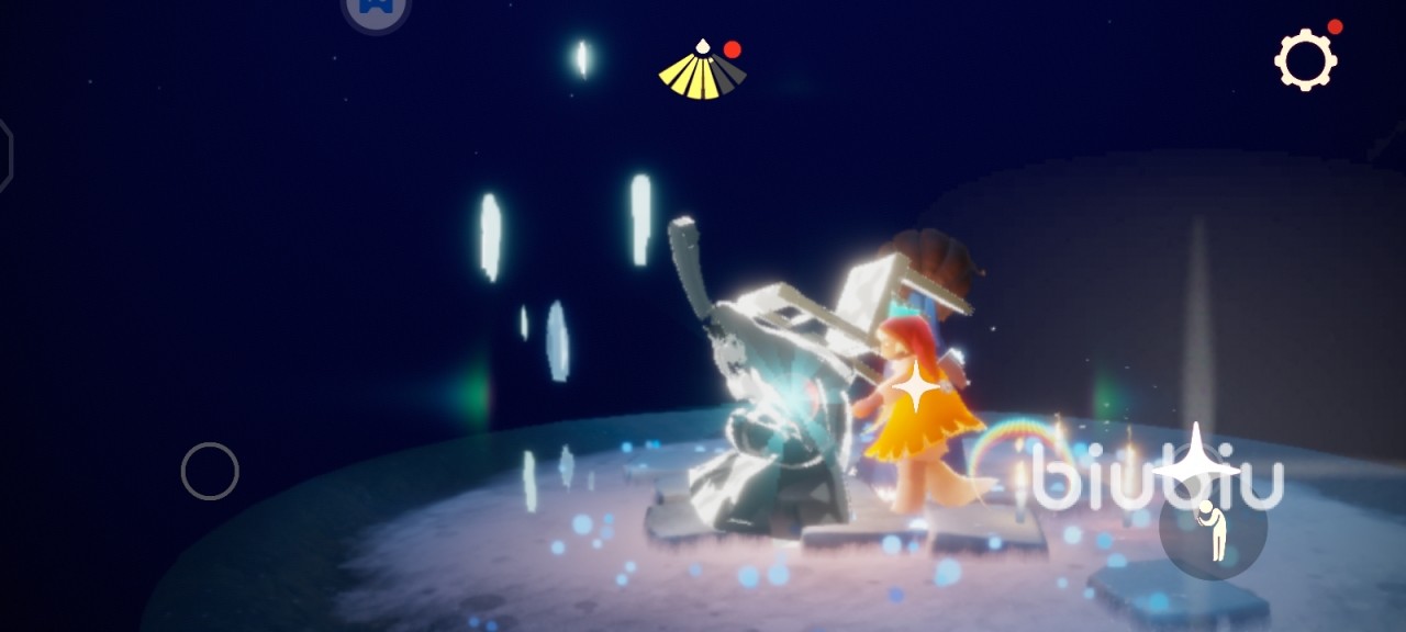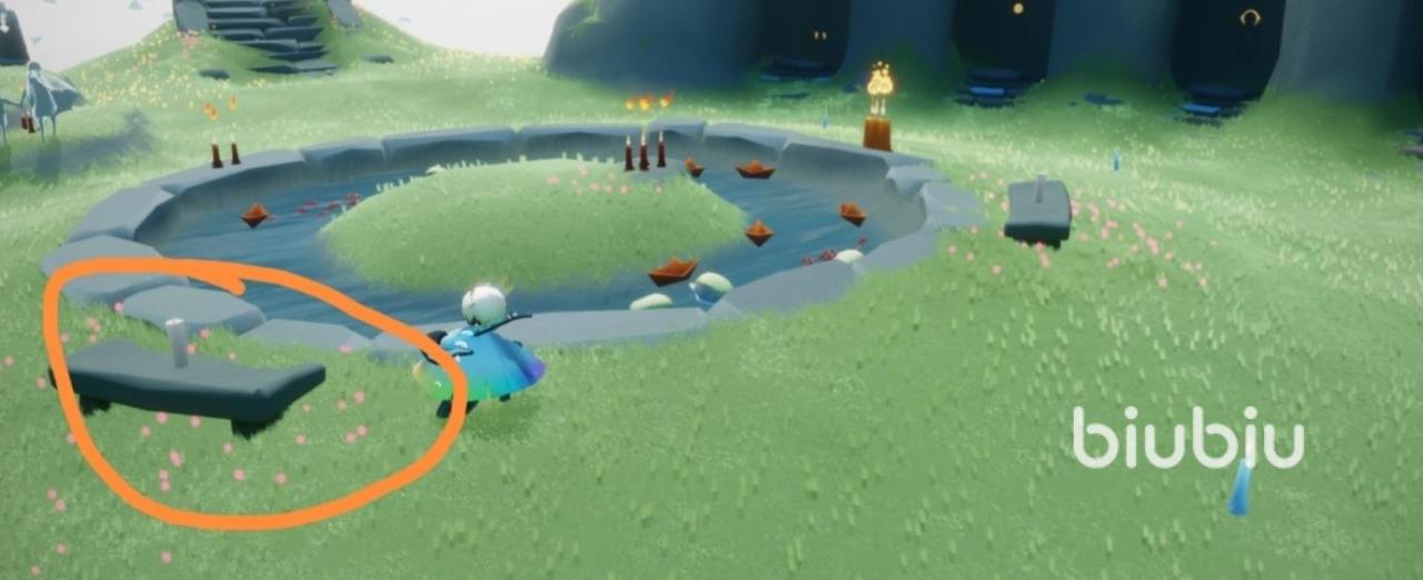 如果不清楚这个先祖在什么地方的话,可能第二个任务就显得比较难了,但是没关系,这个先祖的位置已经给各位找好了,他就在禁阁的四楼浮台上,各位飞到这个浮台上,也就是亭子上方的平台上,接着再通过祈祷这个动作,将石头一个个点亮就行了。