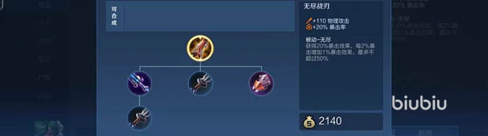 不过提醒一下,不同于上个赛季,本次赛季里面,无尽战刃是有一些新调整的,如上图所示,其暴击率从此前的百分之二十五,变成了当下的百分之二十,降了百分之五,同时其被动在每得到百分之二的暴击时都能再提升百分之一的暴击效果,最高为百分之五十。