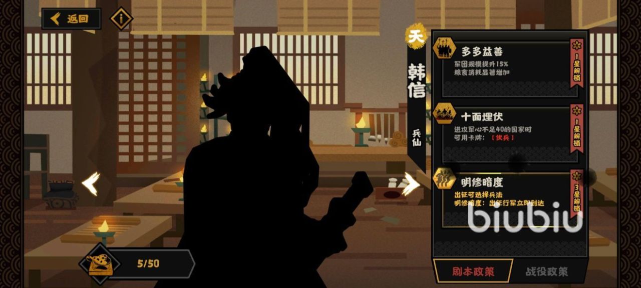 第二个是韩信,只要读过秦汉这一时期的历史,想必对他都是非常熟悉的了,帮助刘邦打天下的一个能人了,而在游戏里,其技能也是相当给力的,甚至比一些局内的道具都要实用一些,在释放该技能后,他能让部队即刻抵达目标位置。这个技能有三分钟的CD,在资源耗费上也是一点不高的,相比较行军虎符的话,其效果也是当仁不让的。