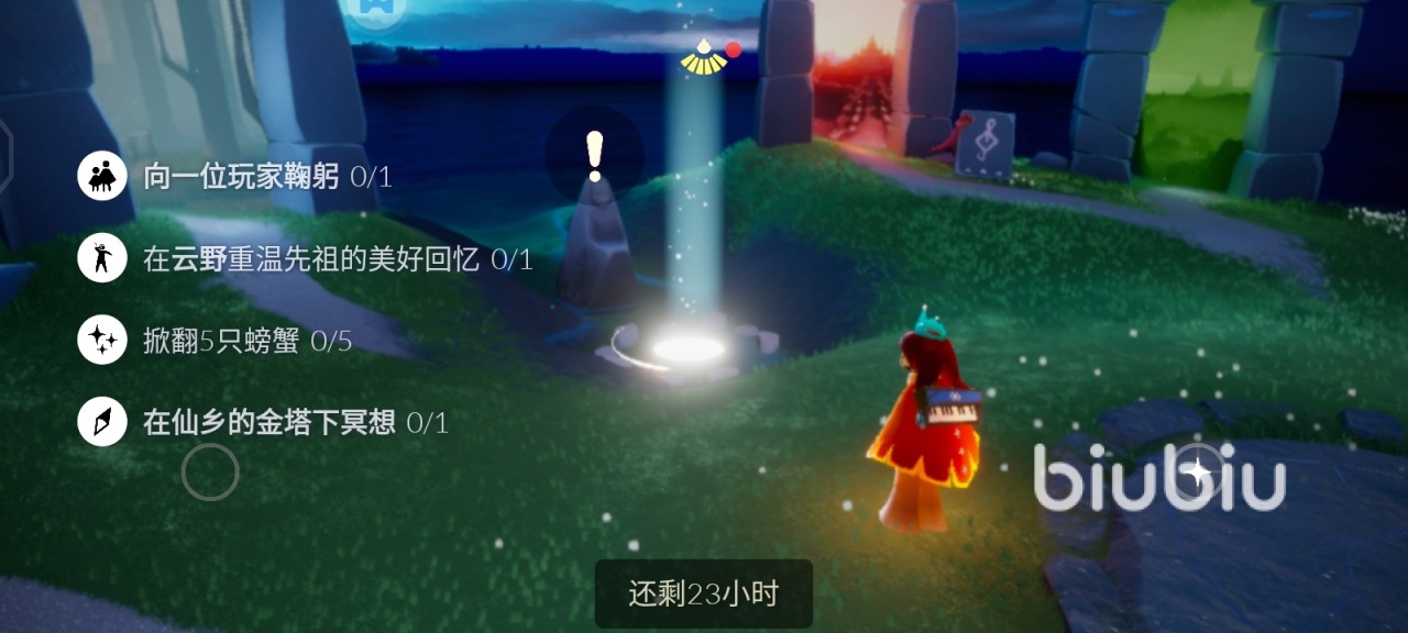 总结一下,今日份的任务要么是去云野图,要么是去暮土图,此外也要提醒一下,今日份的大蜡烛以及季节蜡烛也都能在云野图上发现,不要忘了一起去找一找哦。