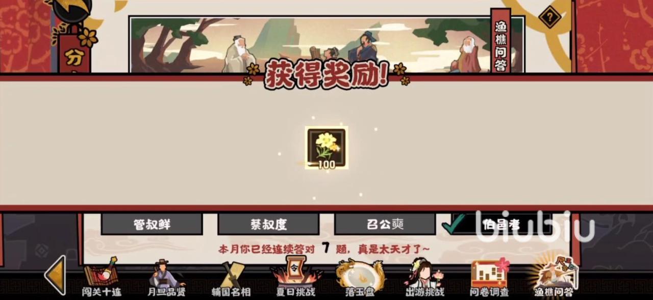 无悔华夏渔樵问答7.7答案 7月7日渔樵问答答案解析