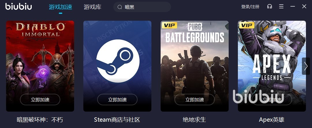 小编接下来为大家推荐一款市面上比较火爆的加速器,biubiu加速器。这款加速器不仅是可以加速暗黑,而且我们经常玩的一些游戏都可以在这款加速器里面进行加速。我们的小伙伴最关心的其实还是这款加速的性能到底怎么样,毕竟我们在战斗的时候最害怕的还是网络出现问题,毕竟一个延迟,我们就会惨死在敌人的刀下,说是分秒必争也不为过了。