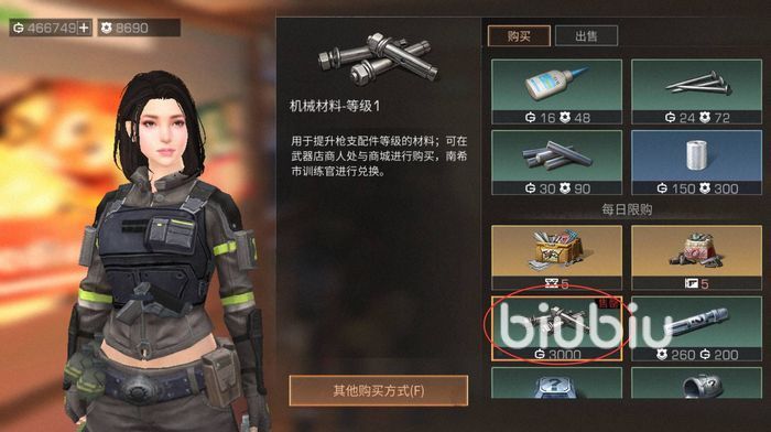 其中就有你们需要的配件,不过因为是每日限购,所以他的数量是有限制的,不同的零件所需要的价格都是不一样的,有的要徽章有的要金币,还有的既要徽章又要金币,当点击这个商品后他会出现一个弹框。