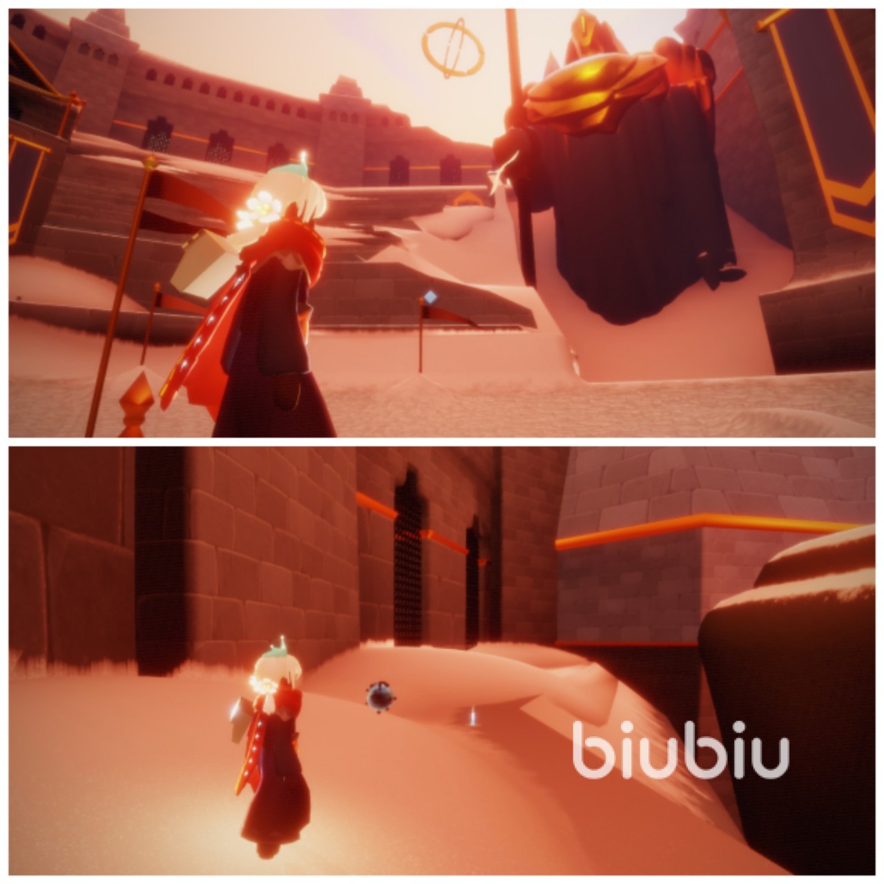 这个霞谷的回忆先祖就在神庙前的左边,而神庙就位于霞谷的终点,各位来到霞谷以后,借助一个赛道就能来到神庙门前,而在其左边的看台上,就能发现该先祖的身影了,上去点亮对方,接着再去收集碎片就能搞定第二个日常了。