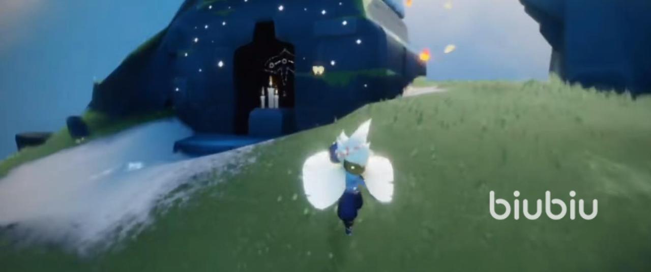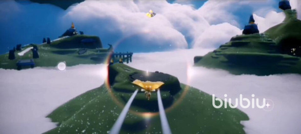 具体的路线就是,小伙伴们先来到云野,在云上一直飞,飞到馒头山,穿过它,接着继续飞行,来到第二张图,也就是三塔图,在中间能看到一座最大的岛屿,继续飞向它,在岛屿的右边位置处将能够看到一道石门;
