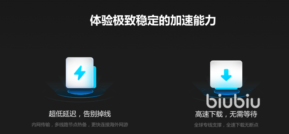 很多玩家可能不单单只是玩手游,也会去体验端游,biubiu加速器就可以满足到大家,因为它不仅可以在移动端进行加速使用,也可以在PC端进行加速使用,使用起来也比较的简单方便,最重要的是整个的加速过程都没有广告。