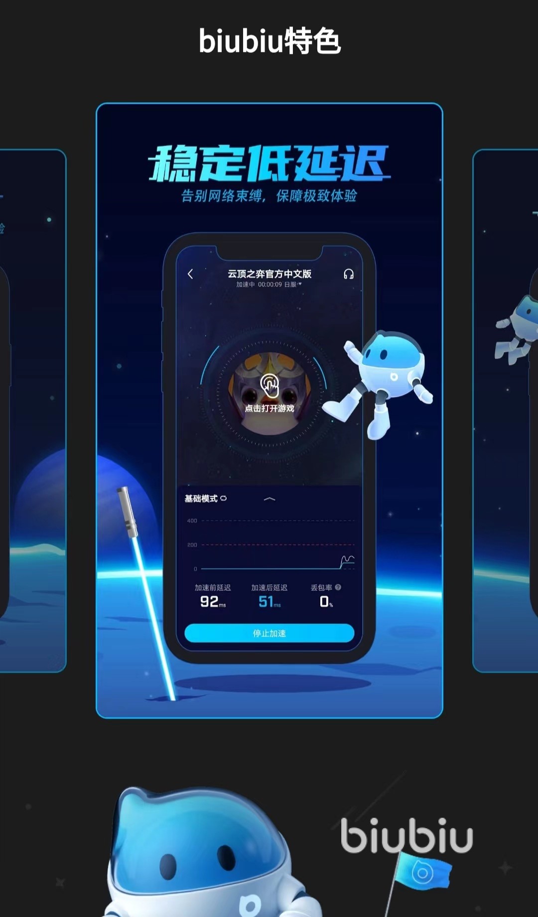 大家选择加速器时无非就是考虑它加速得快不快,有没有效果。今天推荐的这款biubiu加速器就像是为大家量身打造的一样,先不论其他的优点,光是免费这一点就能抵过许多其他加速器。关键是它的使用效果也非常好,玩家可手动调节它的加速模式,清楚地看到加速时的延迟信息,更有系统教程手把手地教大家加速游戏。