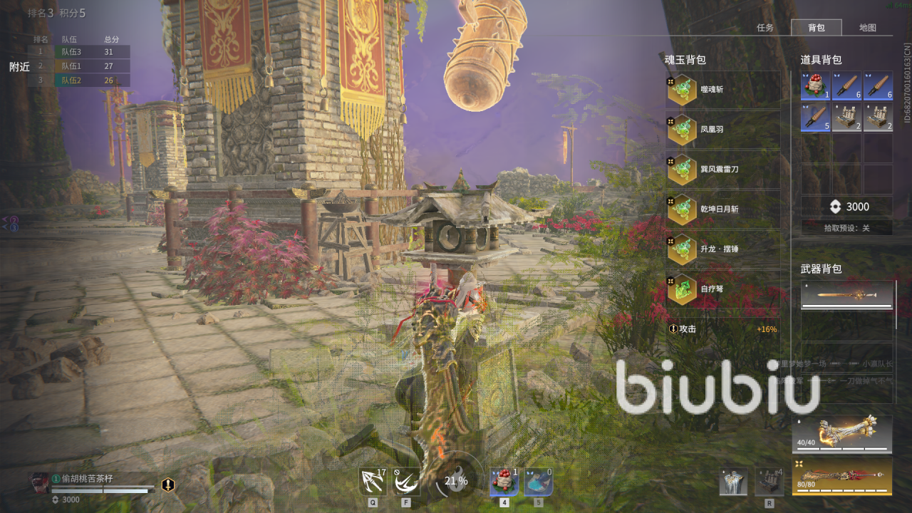 首先,我们来全面了解一下模式的两个专属魂玉,先说【升龙·摆锤】,玩家拾取后,用太刀双刀以及长枪打出升龙时,会触发一个强力的击退效果,如果角度正确的话,可以直接将对手打入水中,完成击败;其次是【千斤坠·摆锤】,玩家拾取后,无论手持什么武器,在跳跃和自由落体时按C蹲伏,都可以快速落地并当场击飞敌人,它的效果强弱取决于下落前的高度,所以有玩家想到,在得到此魂玉后,直接用钩锁来到地图最上方,随后开始快速下落。