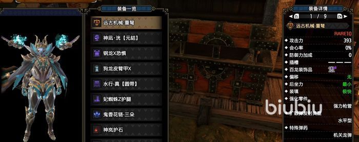 装备所携带的技能如上所示,可以看到加成方面还是非常朴实无华的,高攻击搭配上会心的暴击率加成,以及攻击弱点所带来的50%暴击率提升,实战当中的伤害还是极为可观的。尤其是散弹枪本身就是单发伤害极高的武器。
