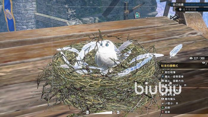 第三个就比较特殊了,是一个幼年的福木兔,我们需要借助翔虫来到议事厅架子上面,在顶部可以看到有一个窝,这里面就有最后一个白色的福木兔了。我们依次给这些福木兔进行拍照,就可以轻松完成任务啦。