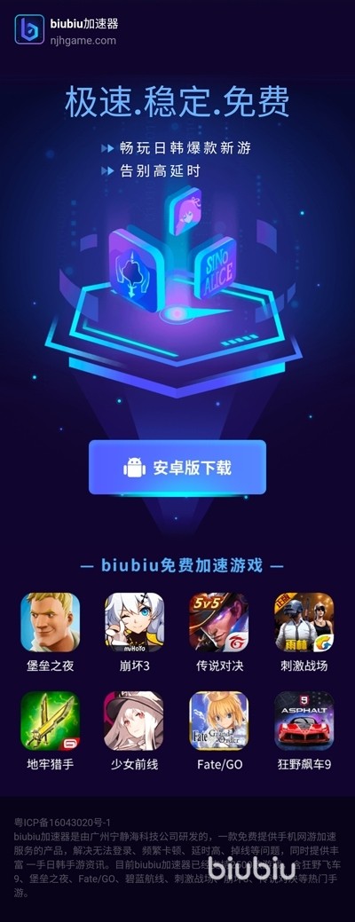 Biubiu加速器不仅加速效果好,而且业务的范围非常广泛,不仅能下载到手机中加速手游,下载到电脑端加速端游,使用电脑模拟器运营手游也可以享受到biubiu加速器的加速服务,并且这些都是免费加速。