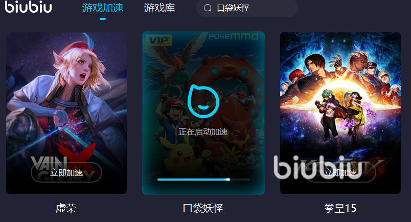 打开biubiu的官方网站之后找到下载端口直接下载安装就成功下载了,从而点开加速器之后搜索想要加速的游戏,如果已经下载了该游戏就会在主界面看到需要加速的游戏提示,成功加速了之后就可以重新回到游戏界面开始畅玩了。