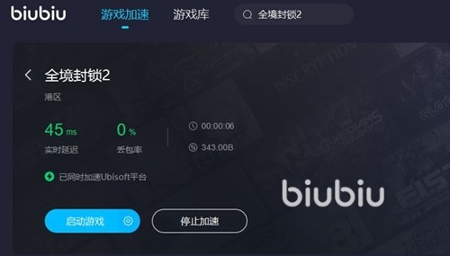 在进入加速器之后我们前往游戏库中找到这款游戏进行添加,然后返回到游戏加速菜单中就可以直接完成一键加速。游戏的账号登录以及联机匹配加载速度都是比较慢的,也受到了不少玩家的抱怨,在开启加速器之后这两个方面得到了明显改善,在为游戏加速的同时软件还会为Ubisoft平台进行加速,大大提高了服务器的连接响应速度。