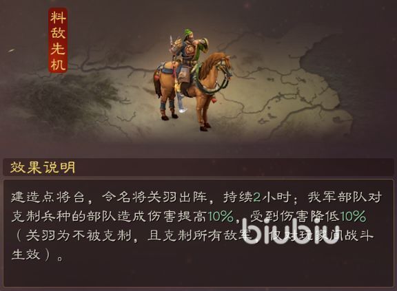 这个计策的具体效果就在于,己方遇上克制队伍时,自身将能够增伤百分之十,同时也能减伤百分之十。