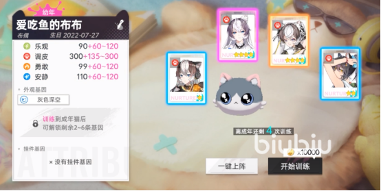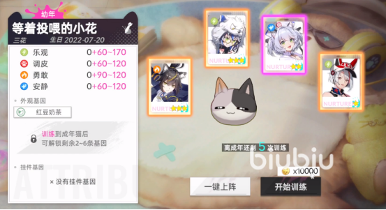 另外,大家还要去注意猫咪品种的搭配,如果大家选择的猫的品种不一致的话,是不可以去进行培养的,自然也是不能合成修养。